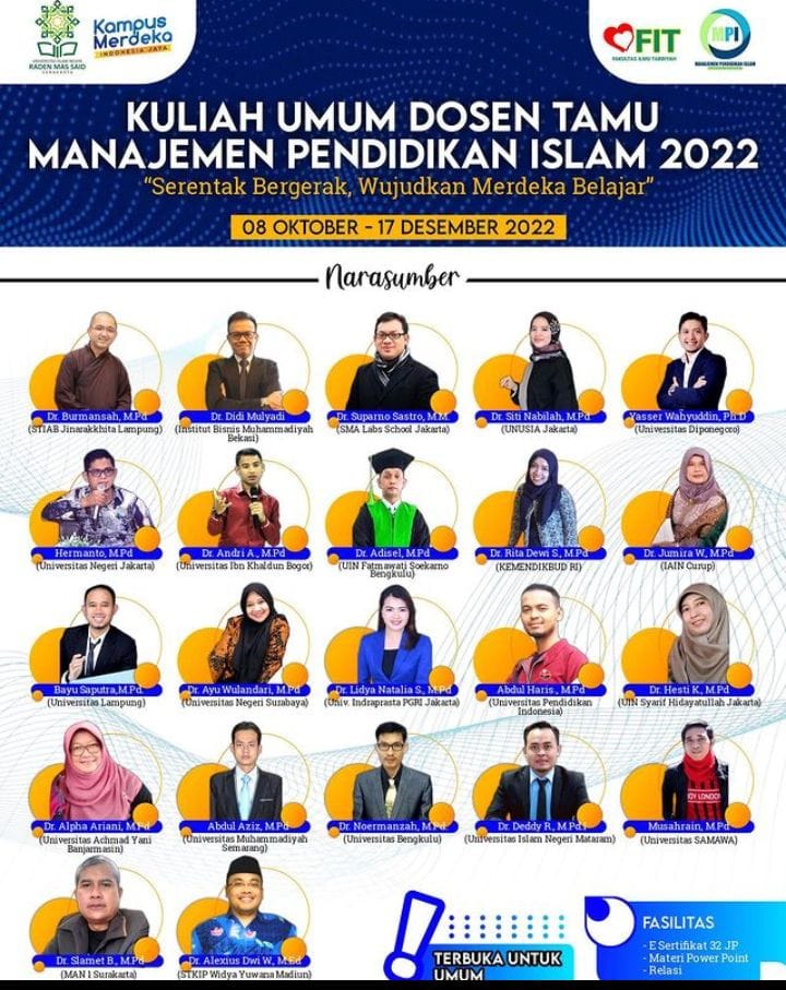 UIN SURAKARTA.Tepat pada Rabu, 06 maret 2024, program studi manajemen pendidikan islam mengadakan kuliah umum dosen tamu yang bertema “ Program Strategi Prodi MPI Menuju Prodi Bertaraf Internasional”. Kegiatan kuliah dosen tamu ini dihadiri oleh wakil dekan satu (Dr. Andi Arif Rifa`i, M.Pd), Kaprodi (Suprapti, M.Pd.I), Sekjur (M. Irfan Syaifuddin, M.H.I), dan dihadiri oleh mahasiswa […]